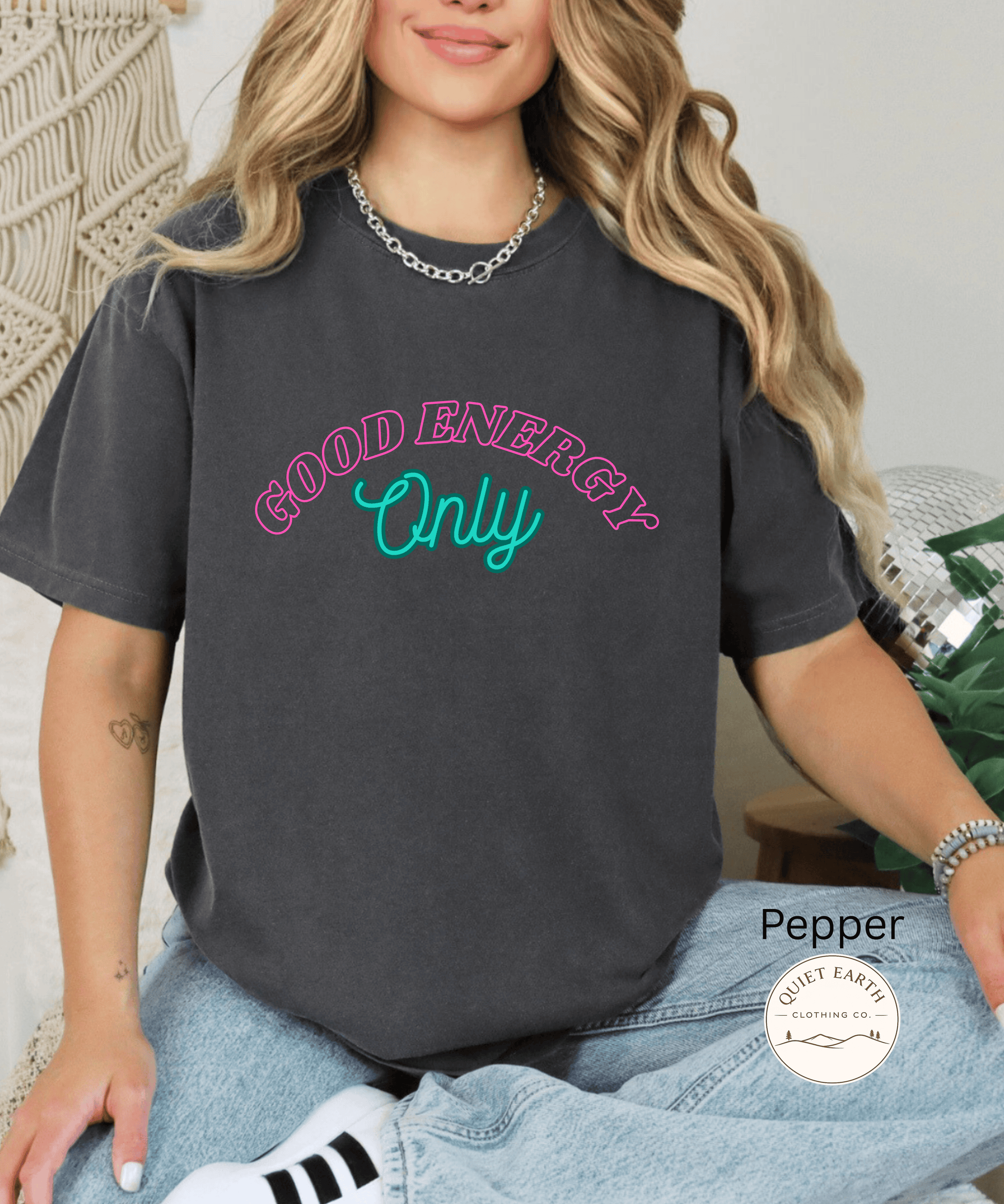 Bring a little positivity into your everyday wardrobe with this stylish “Good Energy Only” graphic tee. Designed with a modern script and playful retro lettering, this shirt is perfect for anyone who loves uplifting vibes, simple aesthetics, and effortless style.