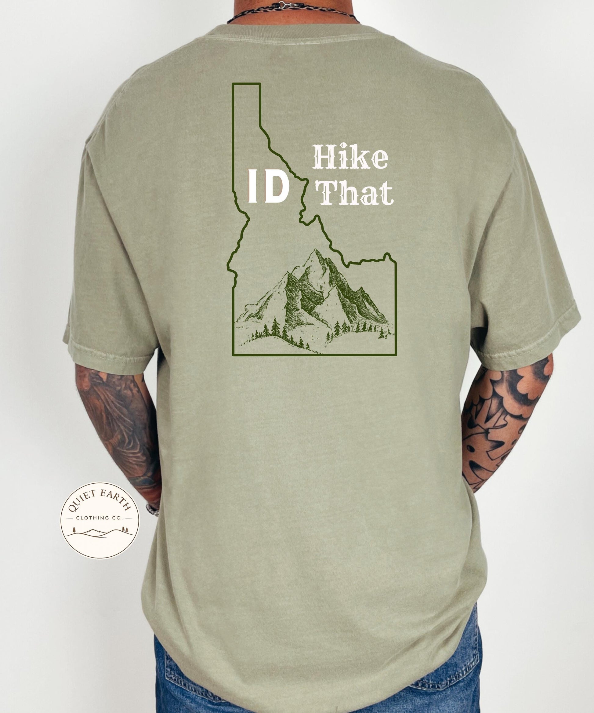 This “ID Hike That” tee is made for Idaho adventurers, mountain chasers, and anyone who feels most at home above the tree line. Featuring a clean outline of the Idaho state silhouette with a detailed mountain scene tucked inside, this design keeps things simple, rugged, and timeless.